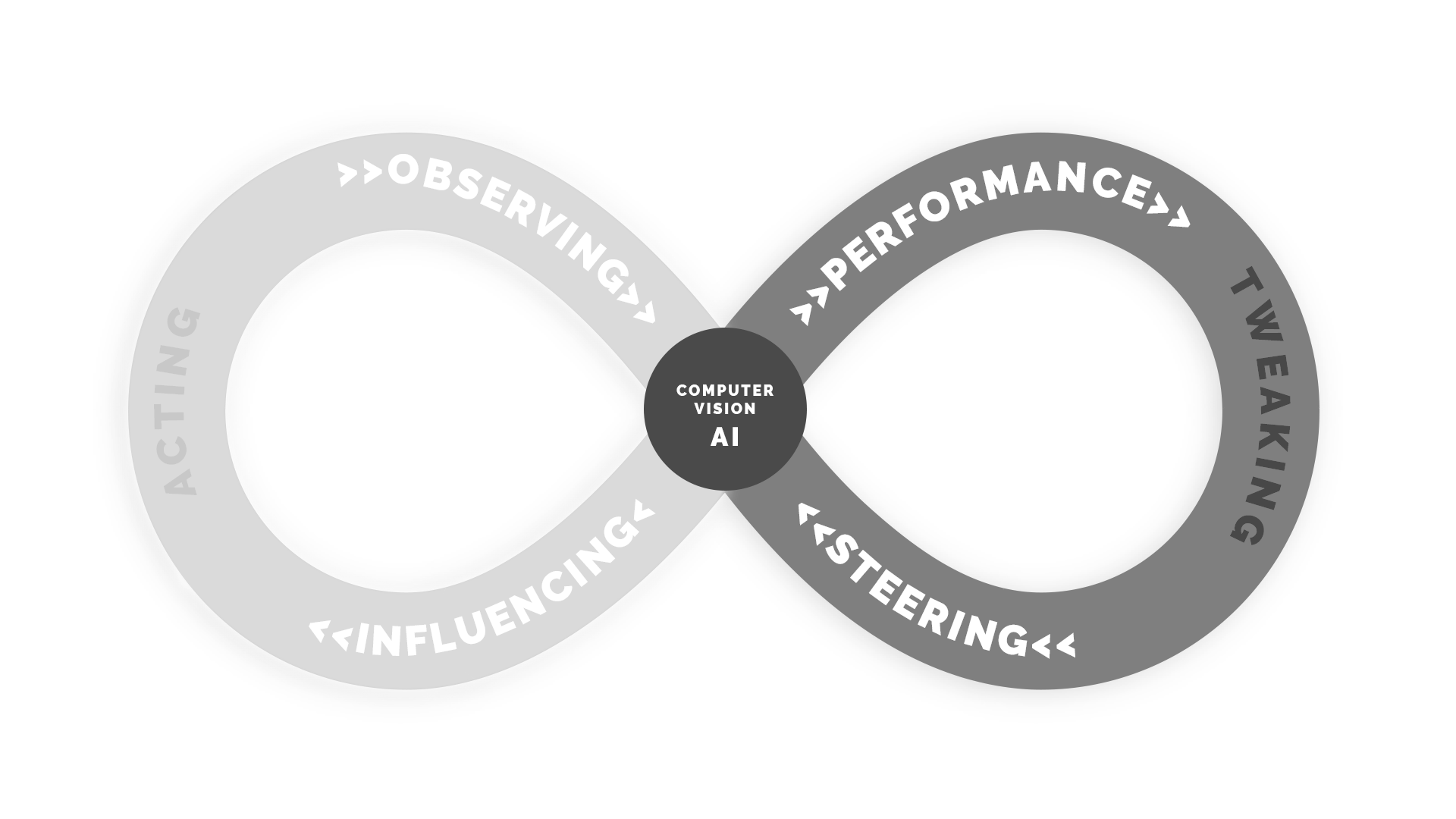In our last blog, we explained the process of automating human inputs and decisions using our “Observing>Influencing>Acting” cycle, which is illustrated on the left part of the feedback loop. This left part is handling the visual inputs and observing objects & patterns while sending outputs that influence the behaviors in the real world. To understand and improve the performance of the Computer Vision AI, we will now be looking at the right side of the loop.