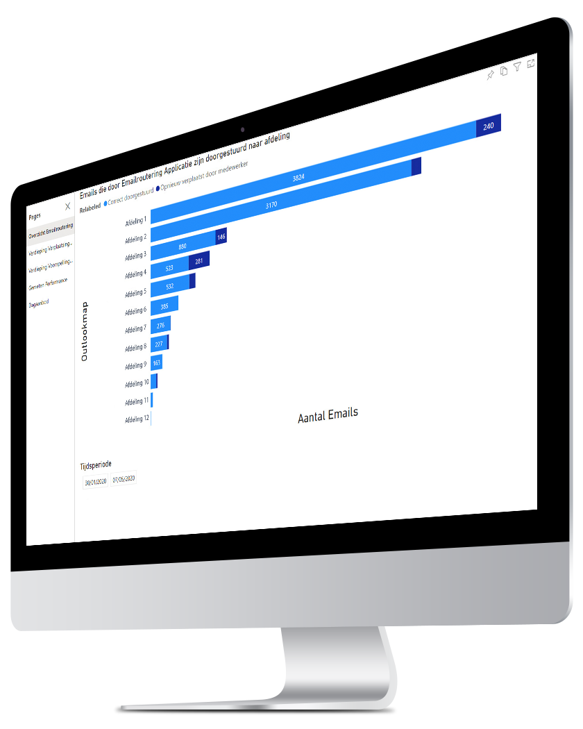 Op de klantenservice van Aevitae komen elke dag honderden, soms wel duizenden e-mails binnen. Elke nieuwe e-mail werd door een medewerker gelezen en doorgestuurd naar de juiste afdeling. Dit is tijdrovend en tevens zeer kostbaar. De vraag was: kunnen we dit niet slimmer en efficiënter aanpakken? Binnen zes weken heeft ons Data Science team een machine learning model ontwikkeld waarmee we 90% van alle binnenkomende e-mails automatisch kunnen doorsturen naar de juiste afdeling. De AI-tool bespaart Aevitae maar liefst 2 FTE’s werk op jaarbasis!
